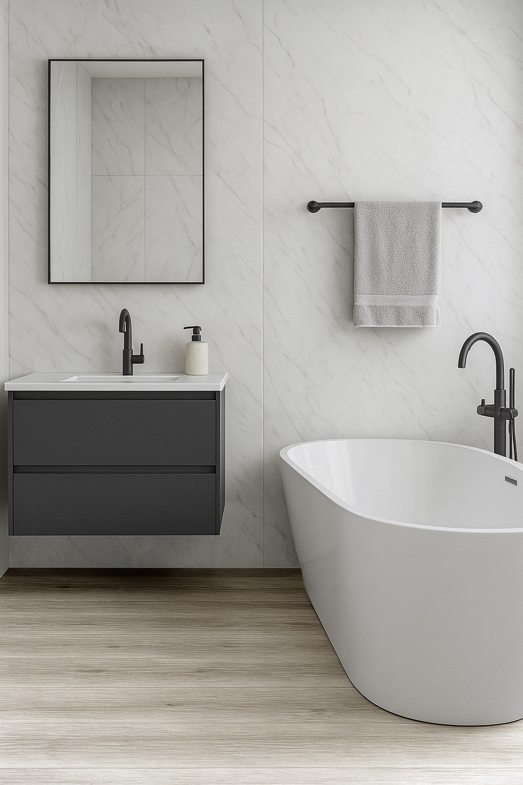 Apresenta texturas profundas e relevos subtis que espelham o efeito natural da madeira.