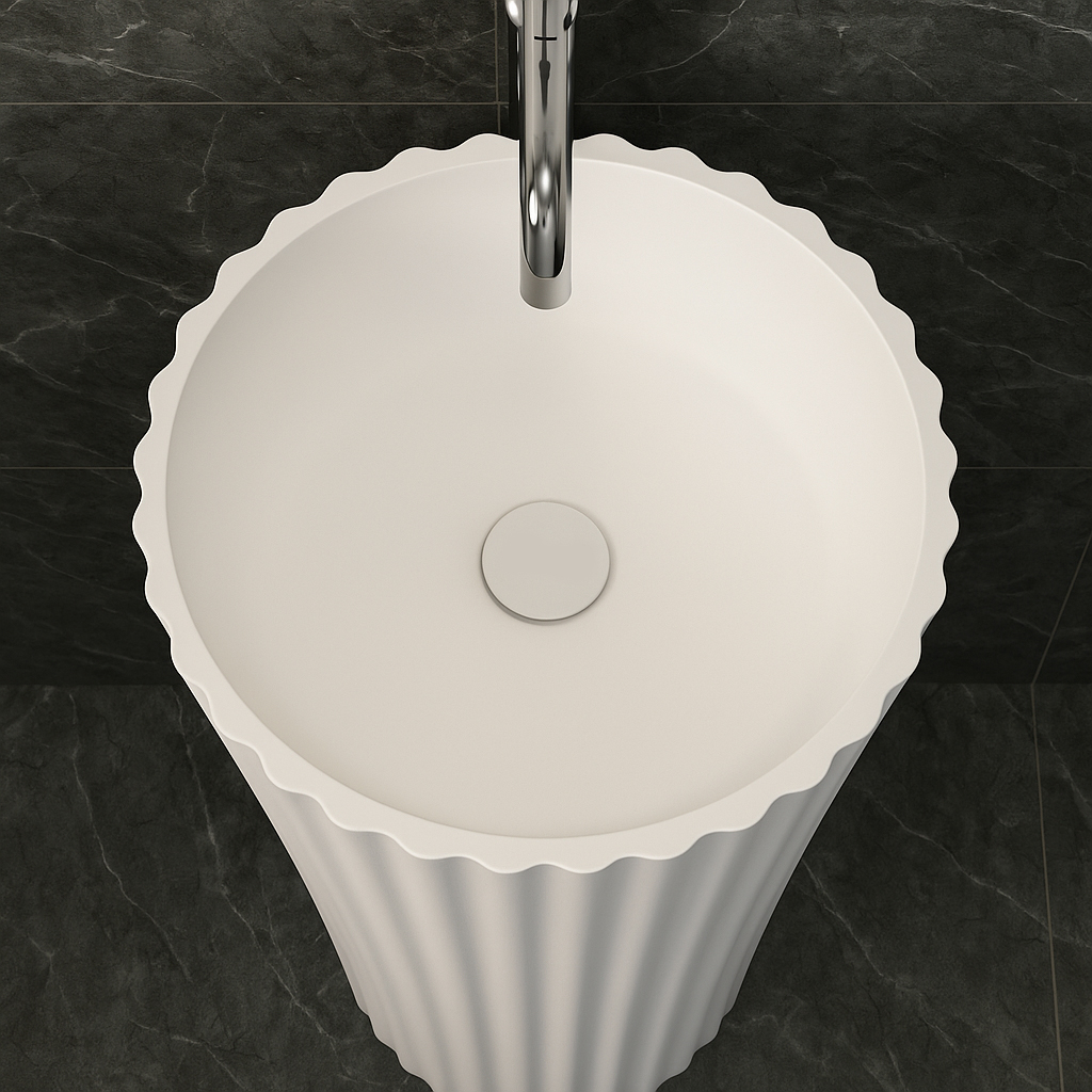 O Lavatório Solid Surface da K-CER combina design moderno e alta resistência, ideal para interiores e exteriores. Fabricado em resina acrílica e minerais naturais, oferece superfície higiênica, não porosa e fácil de reparar. Versátil, termoformável e não tóxico, é a escolha perfeita para projetos de casas de banho para o seu lar e espaços comerciais.