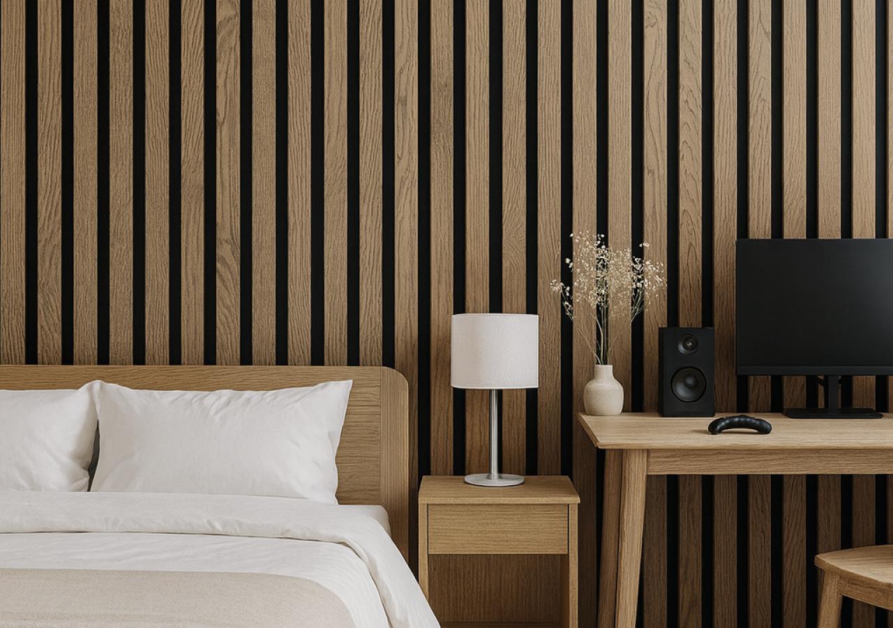 Revestimentos - Painel Ripado de Madeira Acústico - Brown Oak