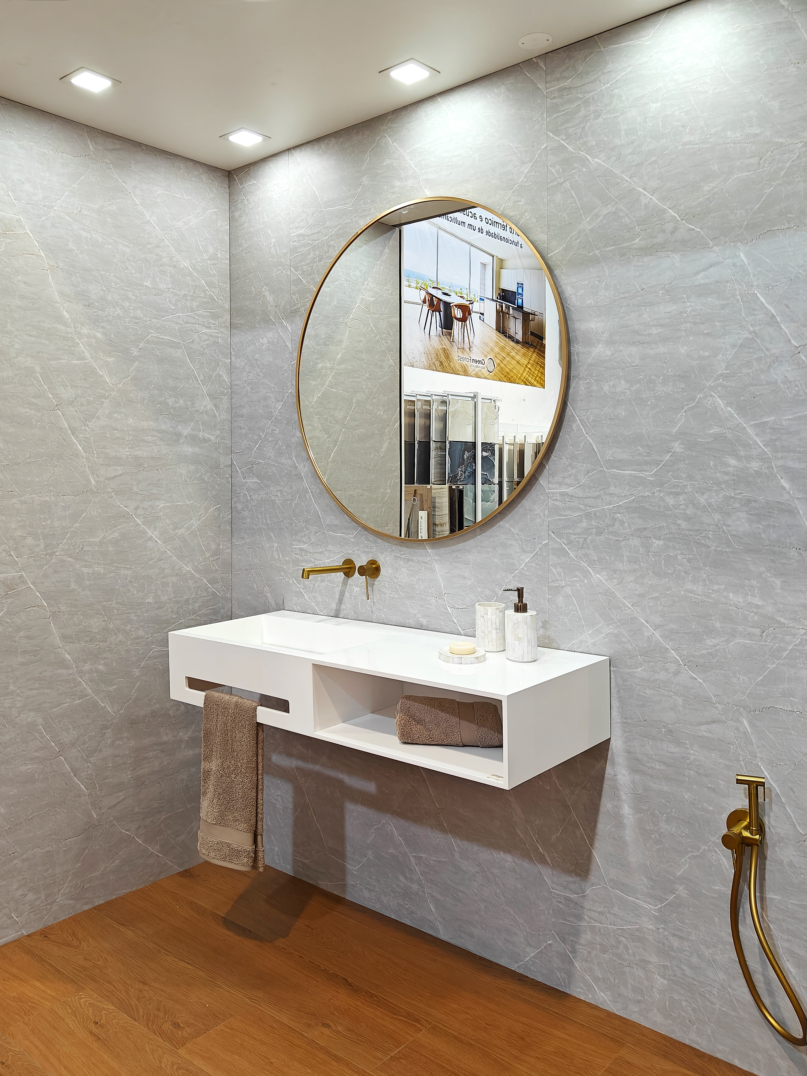Este painel apresenta uma camada de impressão com padrões realistas, como pedra e cimento, que adicionam personalidade e sofisticação a qualquer ambiente. A camada de desgaste oferece uma excelente resistência, preservando o acabamento por muito mais tempo.