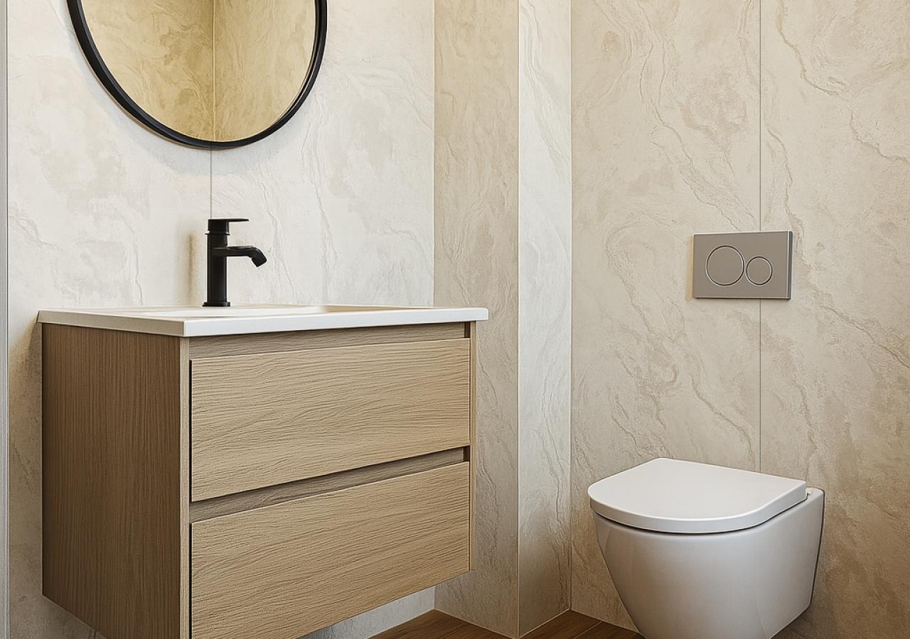 Este painel apresenta uma camada de impressão com padrões realistas, como pedra e cimento, que adicionam personalidade e sofisticação a qualquer ambiente. A camada de desgaste oferece uma excelente resistência, preservando o acabamento por muito mais tempo.