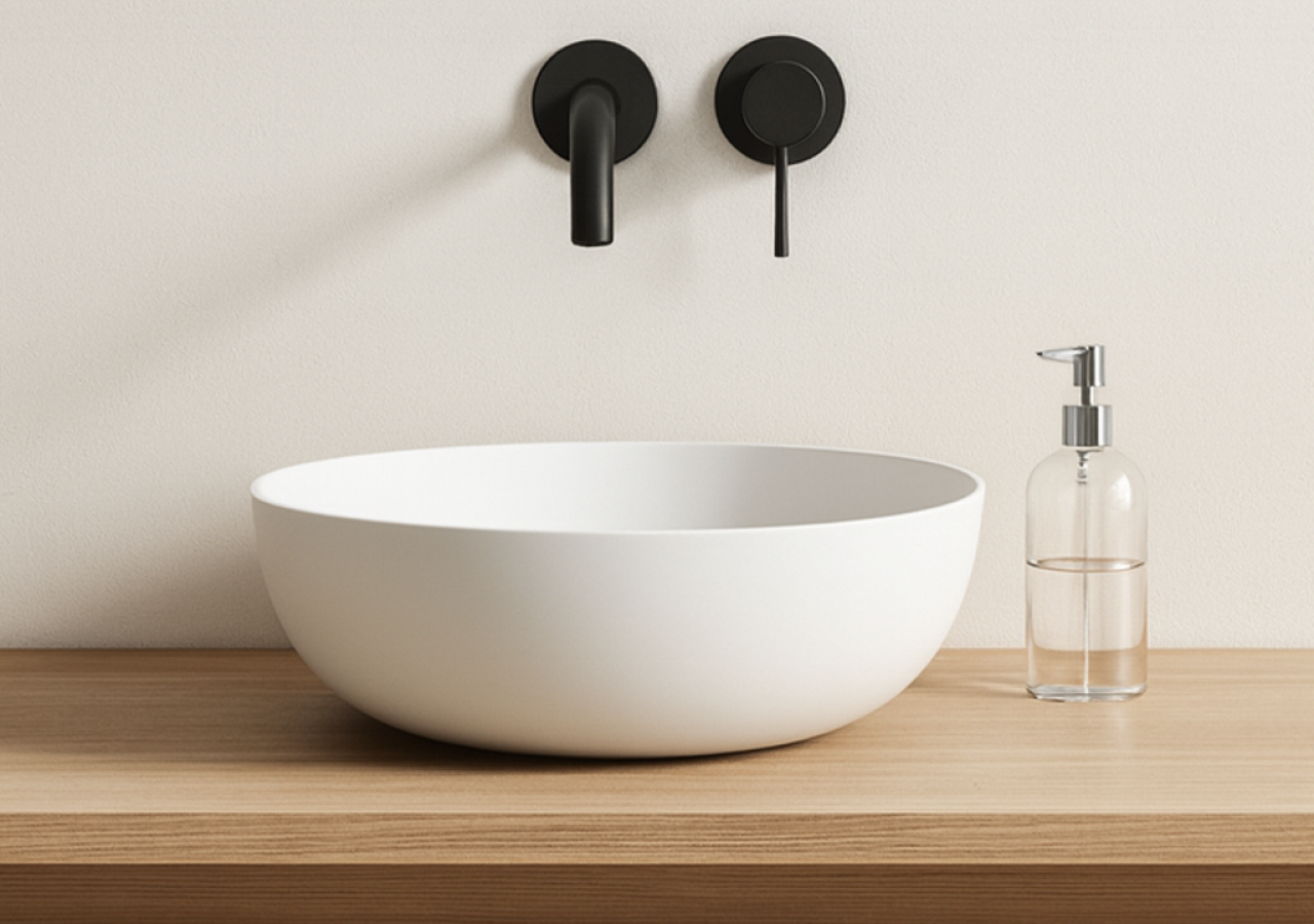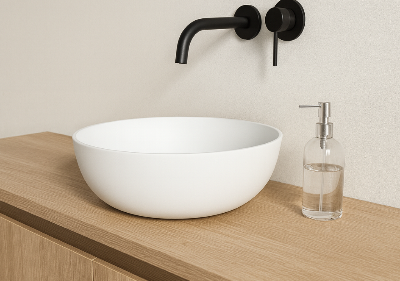O Lavatório Solid Surface da K-CER é resistente, higiênico e versátil, perfeito para qualquer ambiente.