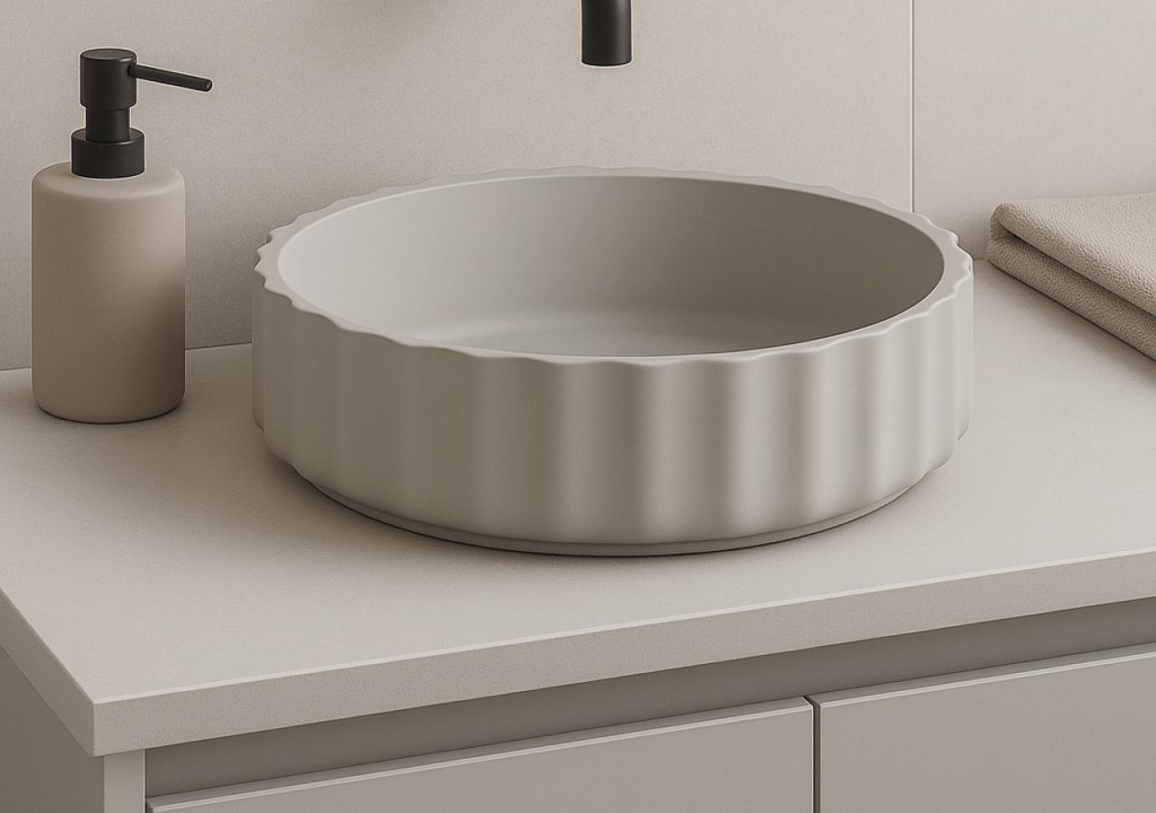Lavatórios - Lavatório de Pousar Cilindro Lines - Cement Grey Matte - KCER