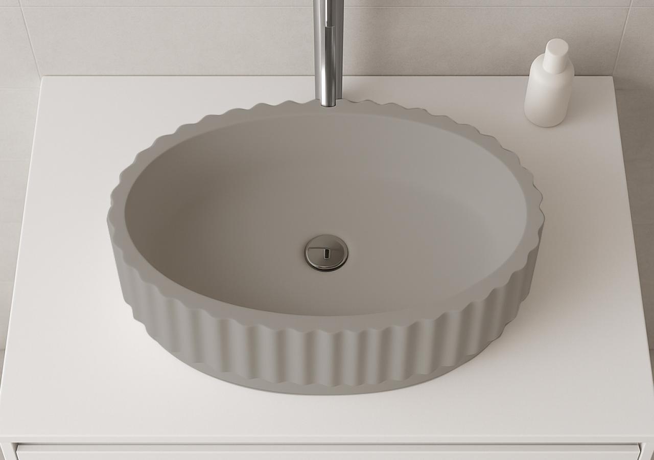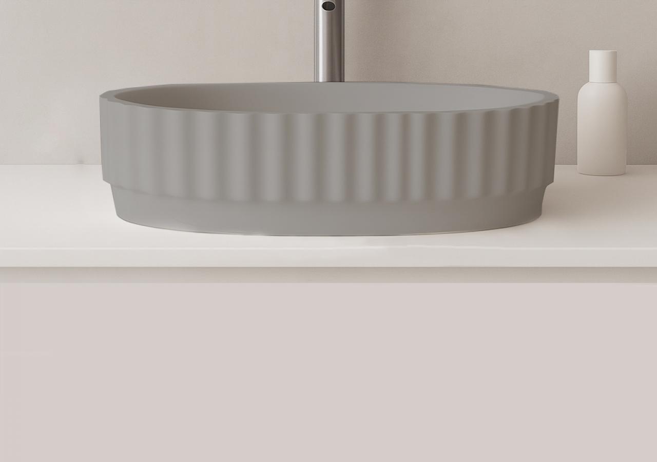 Lavatórios - Lavatório de Pousar Oval Lines - Cement Grey Matte - KCER