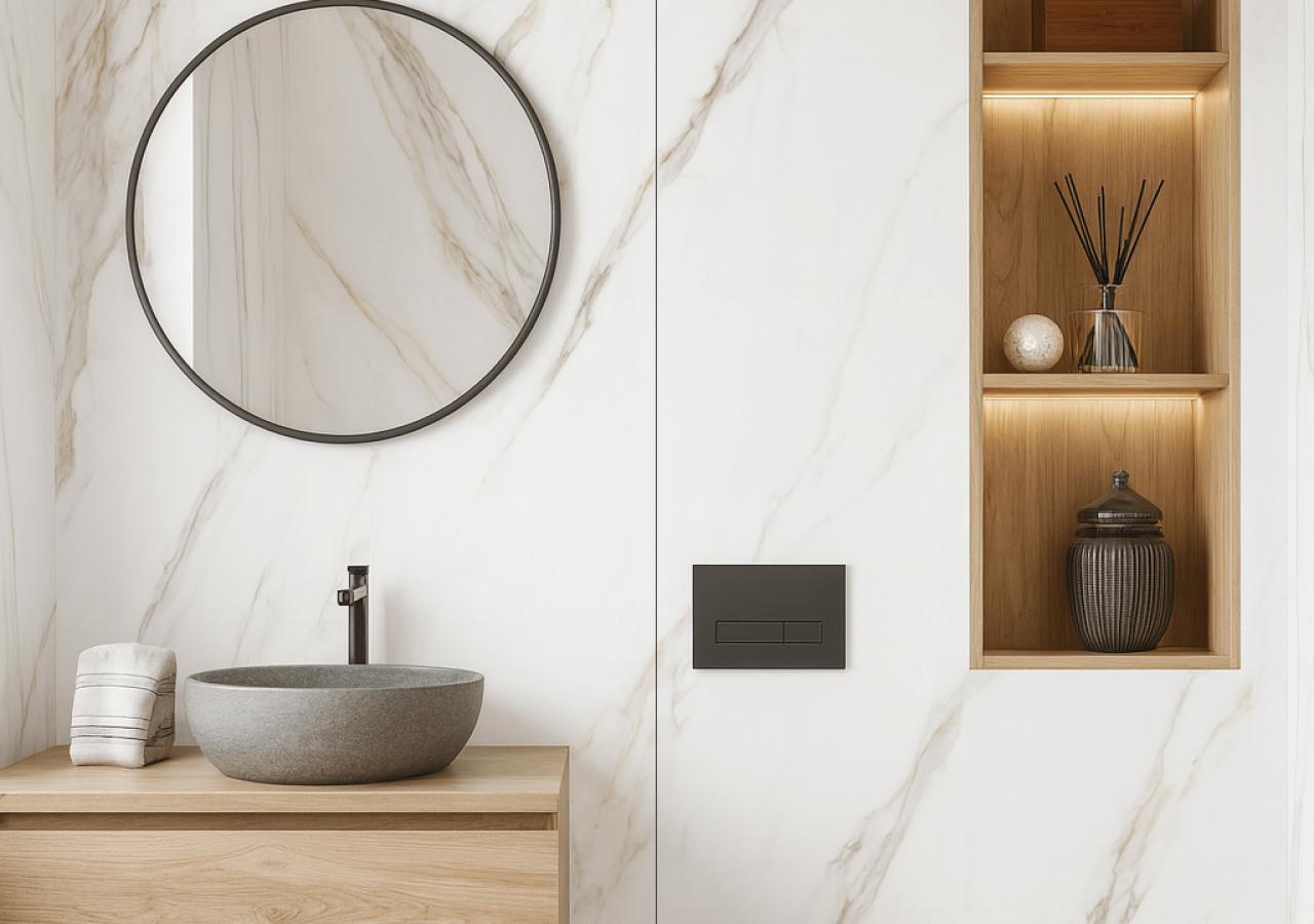 Este painel apresenta uma camada de impressão com padrões realistas, como pedra e cimento, que adicionam personalidade e sofisticação a qualquer ambiente. A camada de desgaste oferece uma excelente resistência, preservando o acabamento por muito mais tempo.