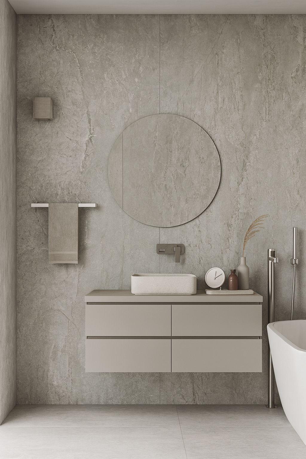 Este painel apresenta uma camada de impressão com padrões realistas, como pedra e cimento, que adicionam personalidade e sofisticação a qualquer ambiente. A camada de desgaste oferece uma excelente resistência, preservando o acabamento por muito mais tempo.