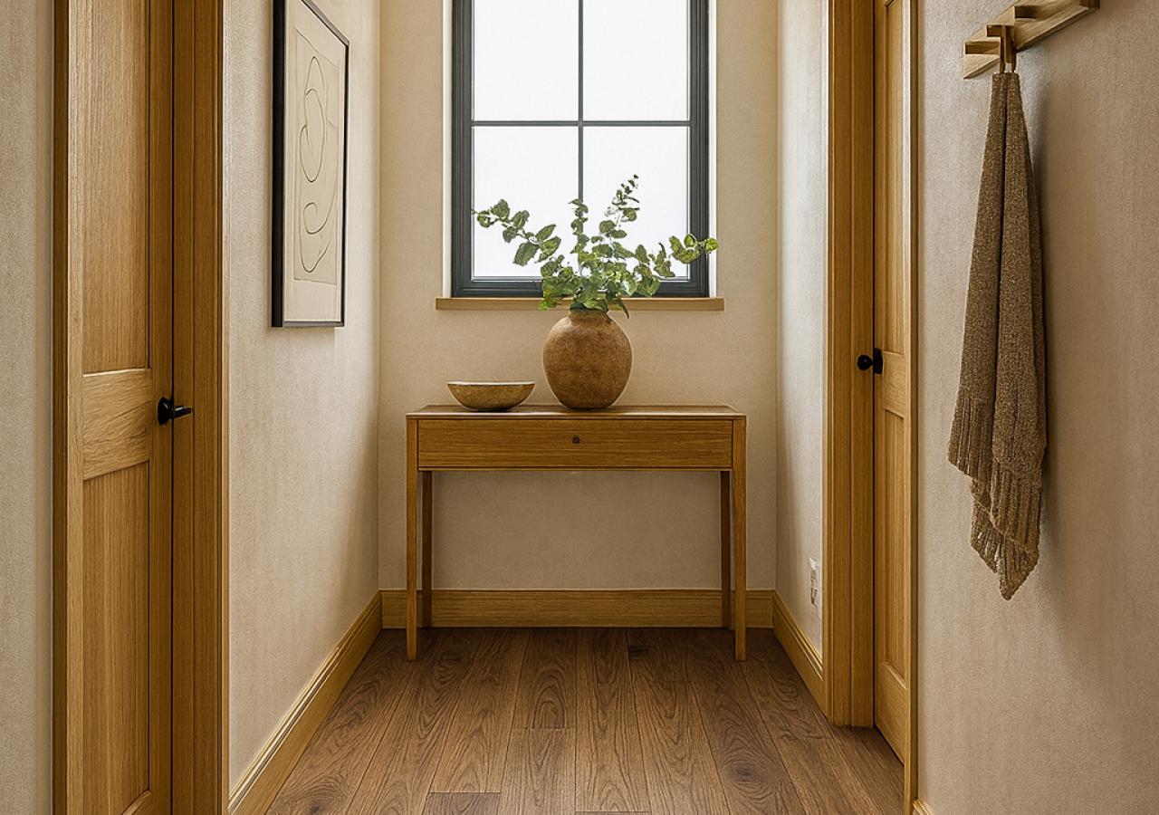 Pavimento multicamadas de madeira natural, com acabamento de cinco camadas de revestimento base, mais duas camadas de revestimento de superfície, anti-riscos (PPG ou Teffert).